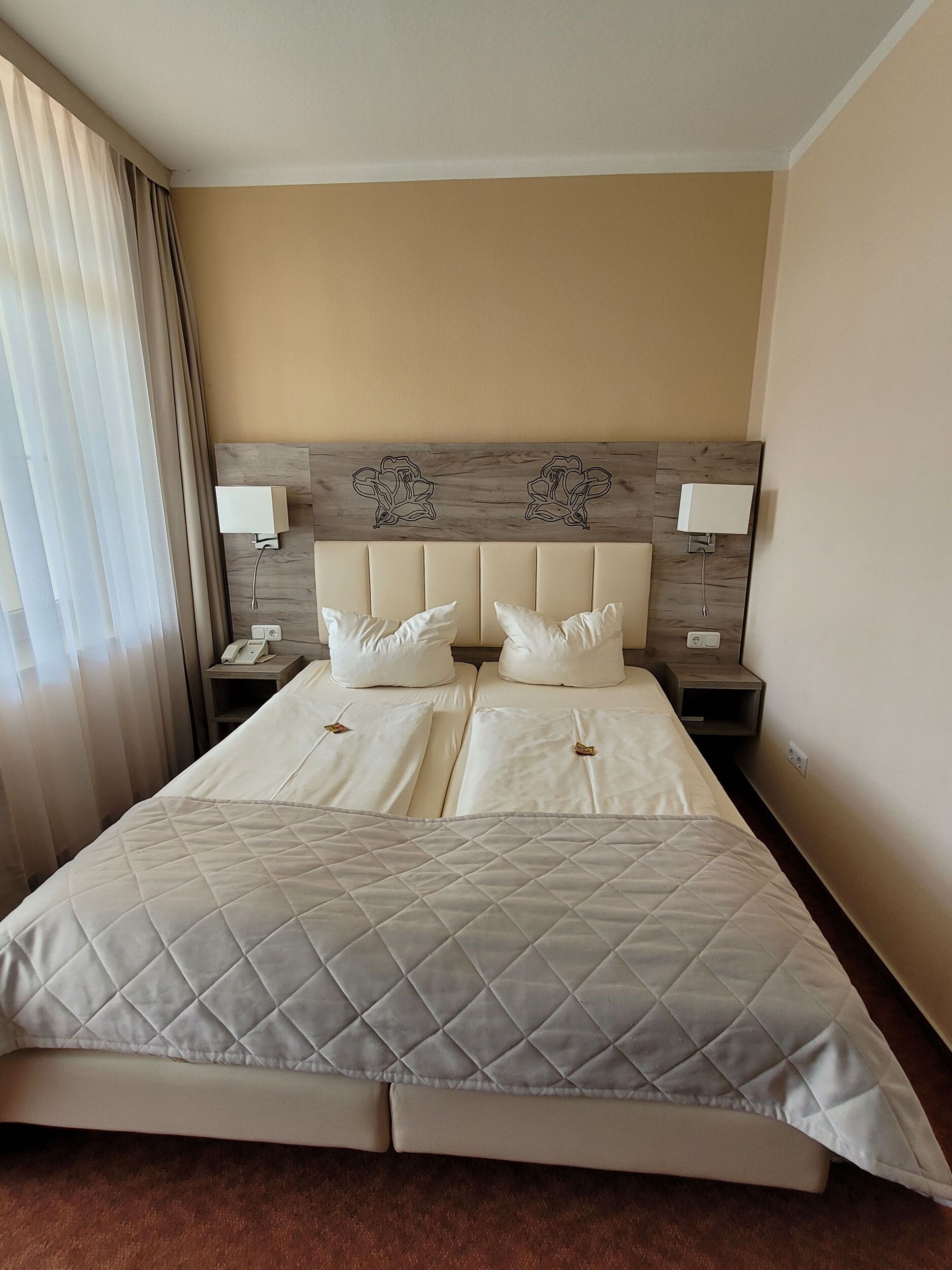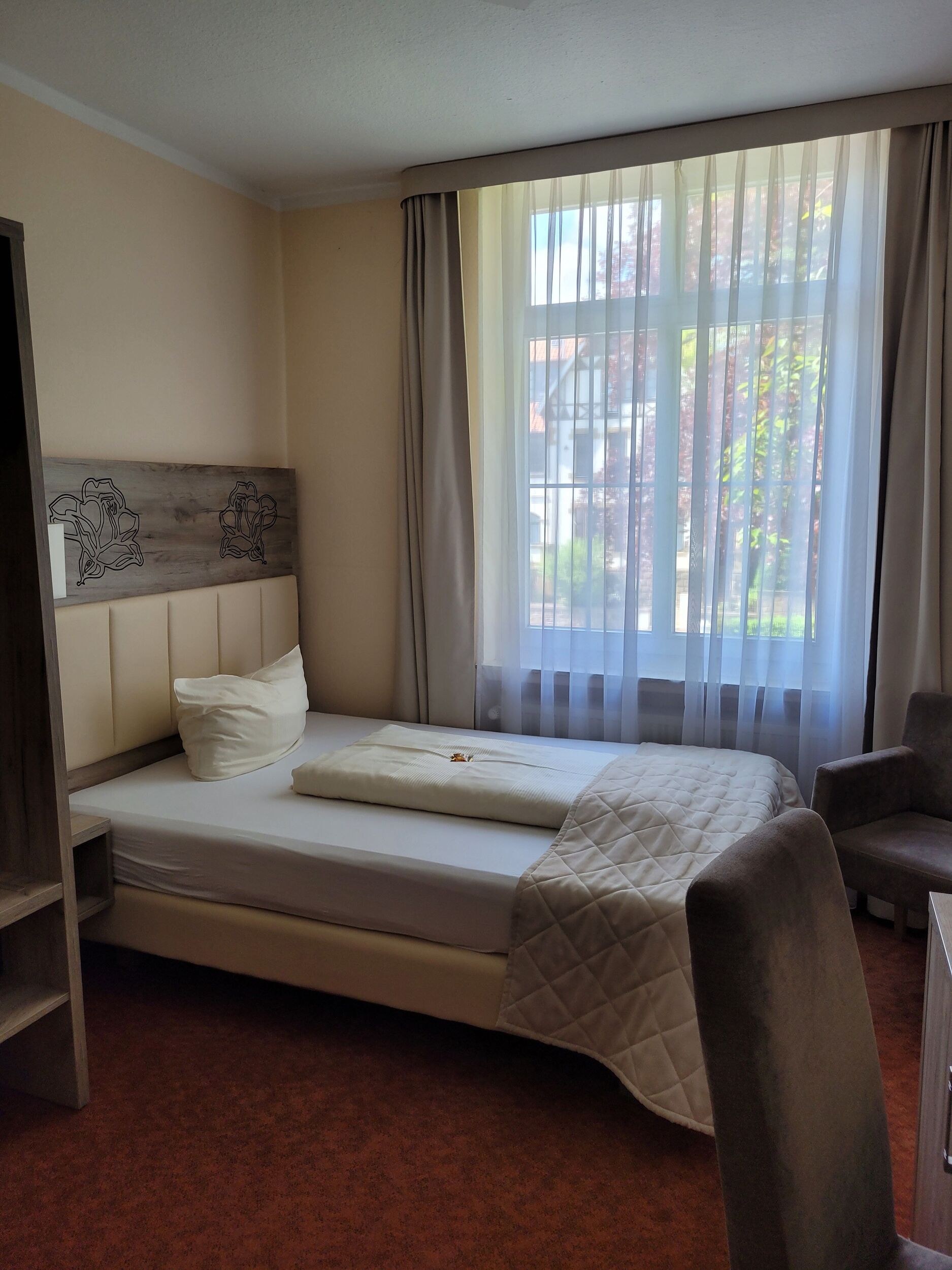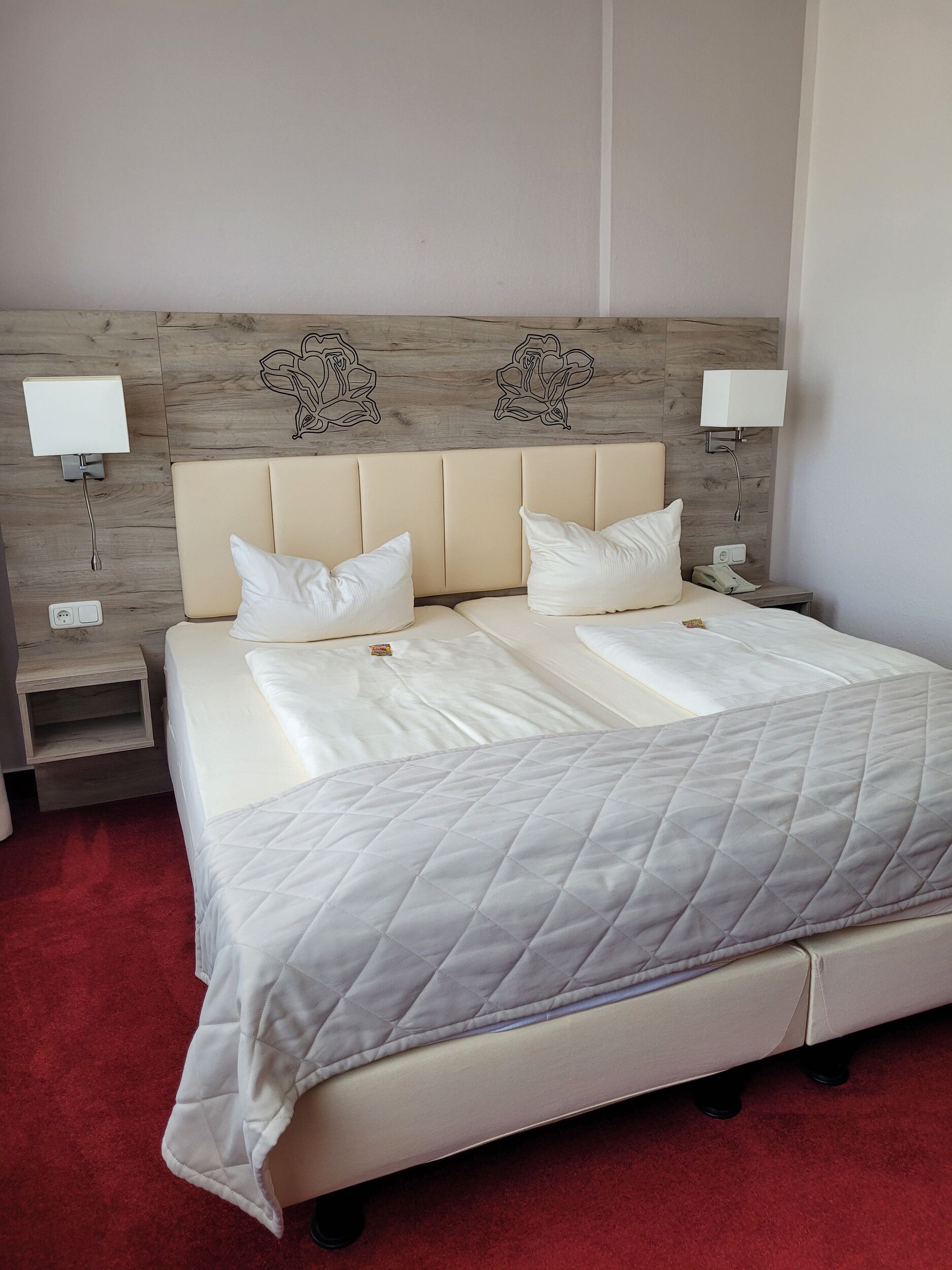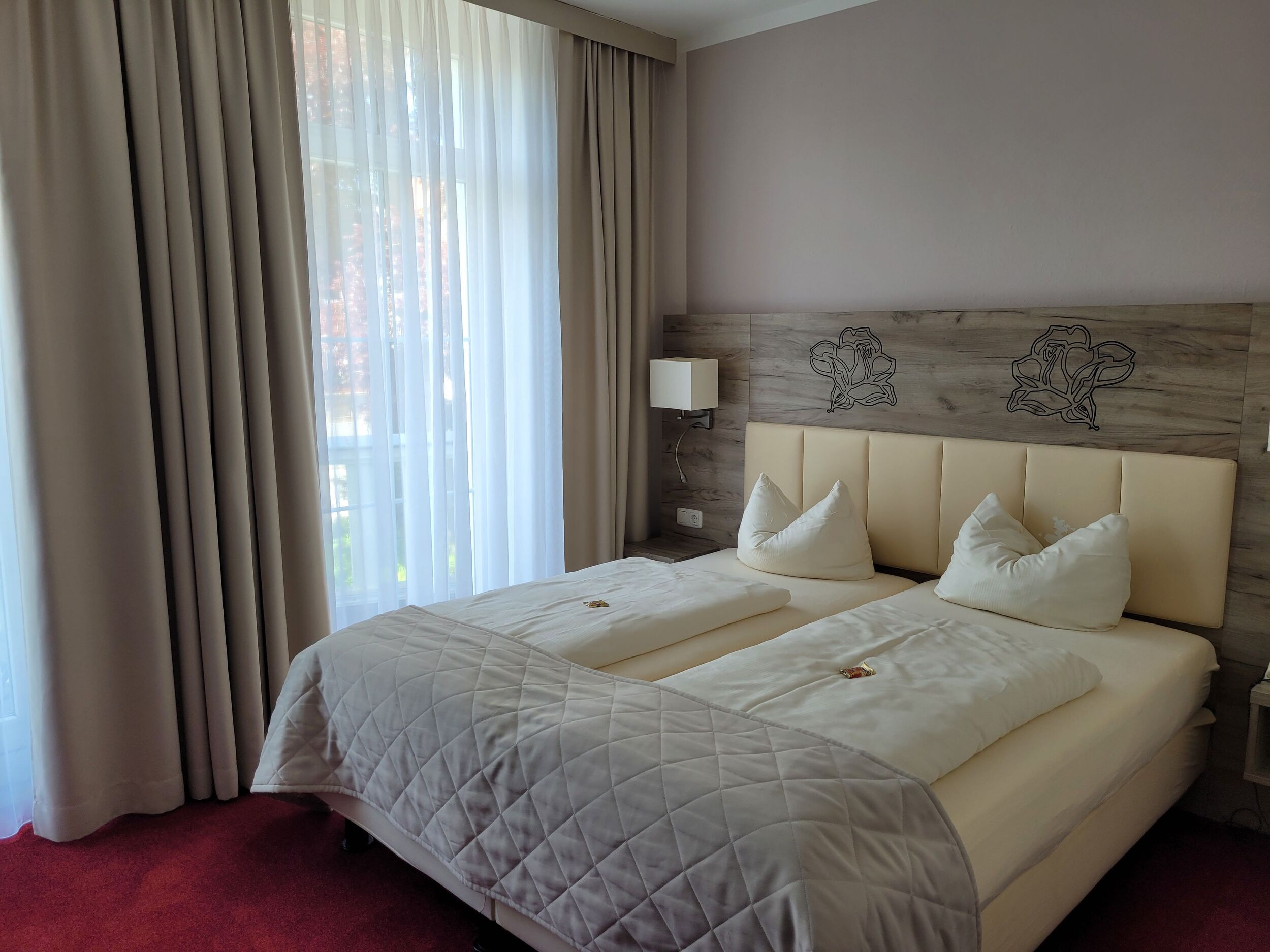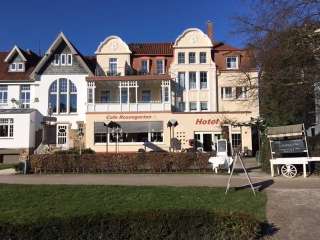 Gemütliche Zimmer mit moderner Ausstattung warten im Haupthaus Rosengarten direkt an der Saline und dem historischen Rosenpark auf Sie. Schicke Bäder, Teppichboden, Schreibtisch, Minibar, Safe, Durchwahl-Telefon und Kabel-Flach-TV garantieren Flair state of the art.