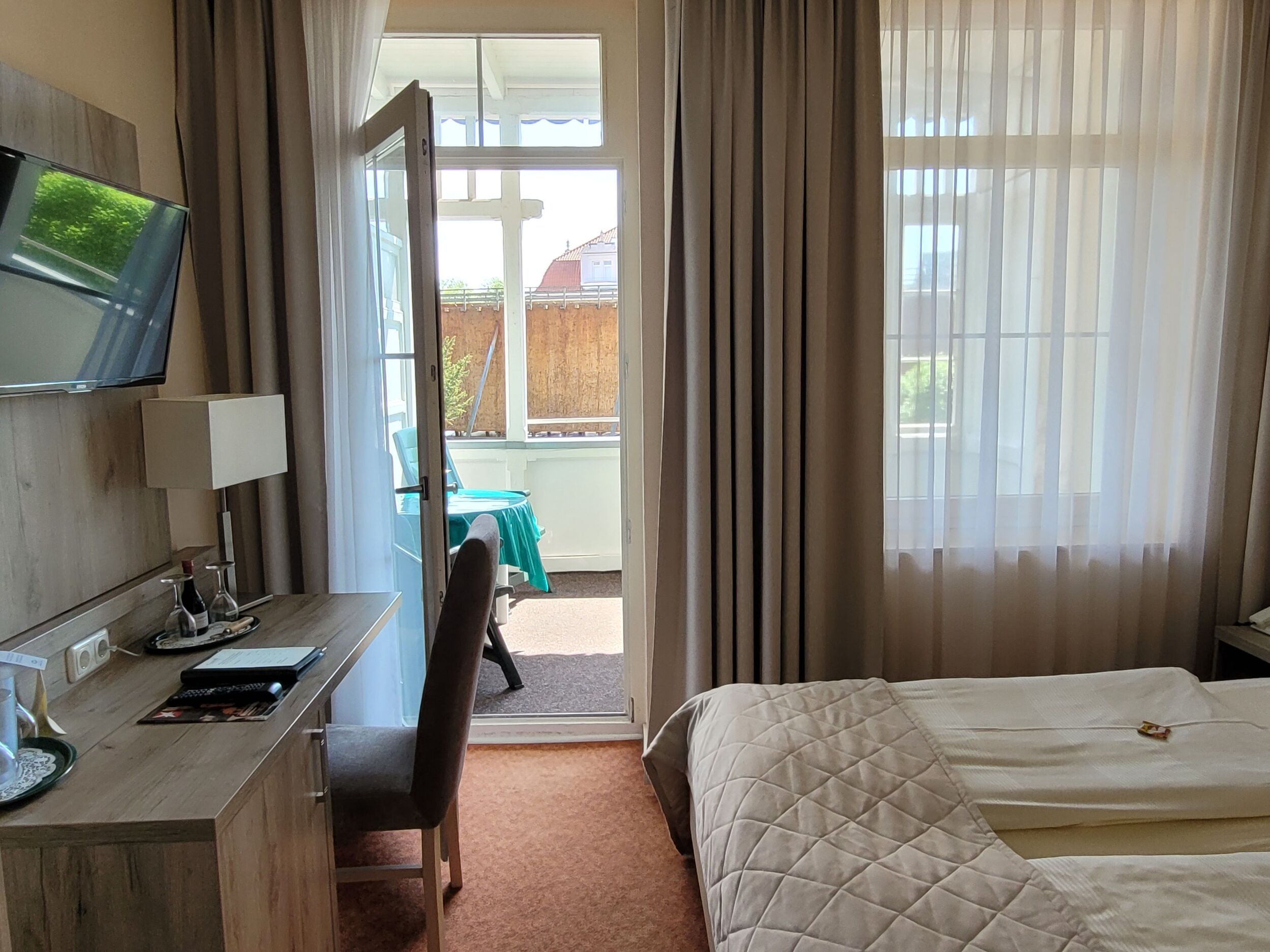 WLAN und Telefonate ins Deutsche Festnetz sind kostenfrei! Günstige Parkplätze direkt vor dem Haus ( soweit verfügbar). Sonnige Zimmer, zum Teil mit Balkonen zur Park- oder Stadtseite, laden zum Entspannen ein. Das gemütlich-elegante Café mit Sonnen-Terrasse und hervorragendem Frühstücks-Service ist leicht zu finden.