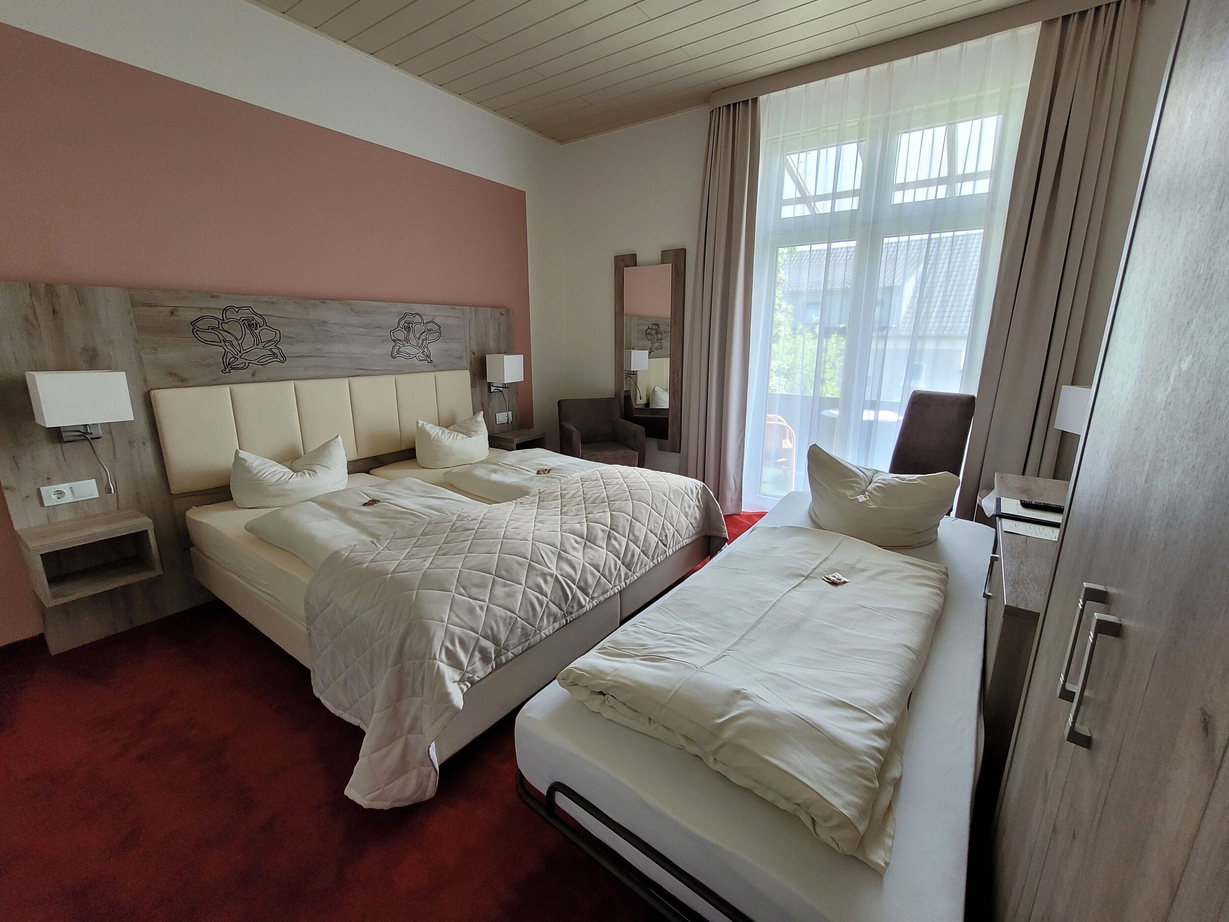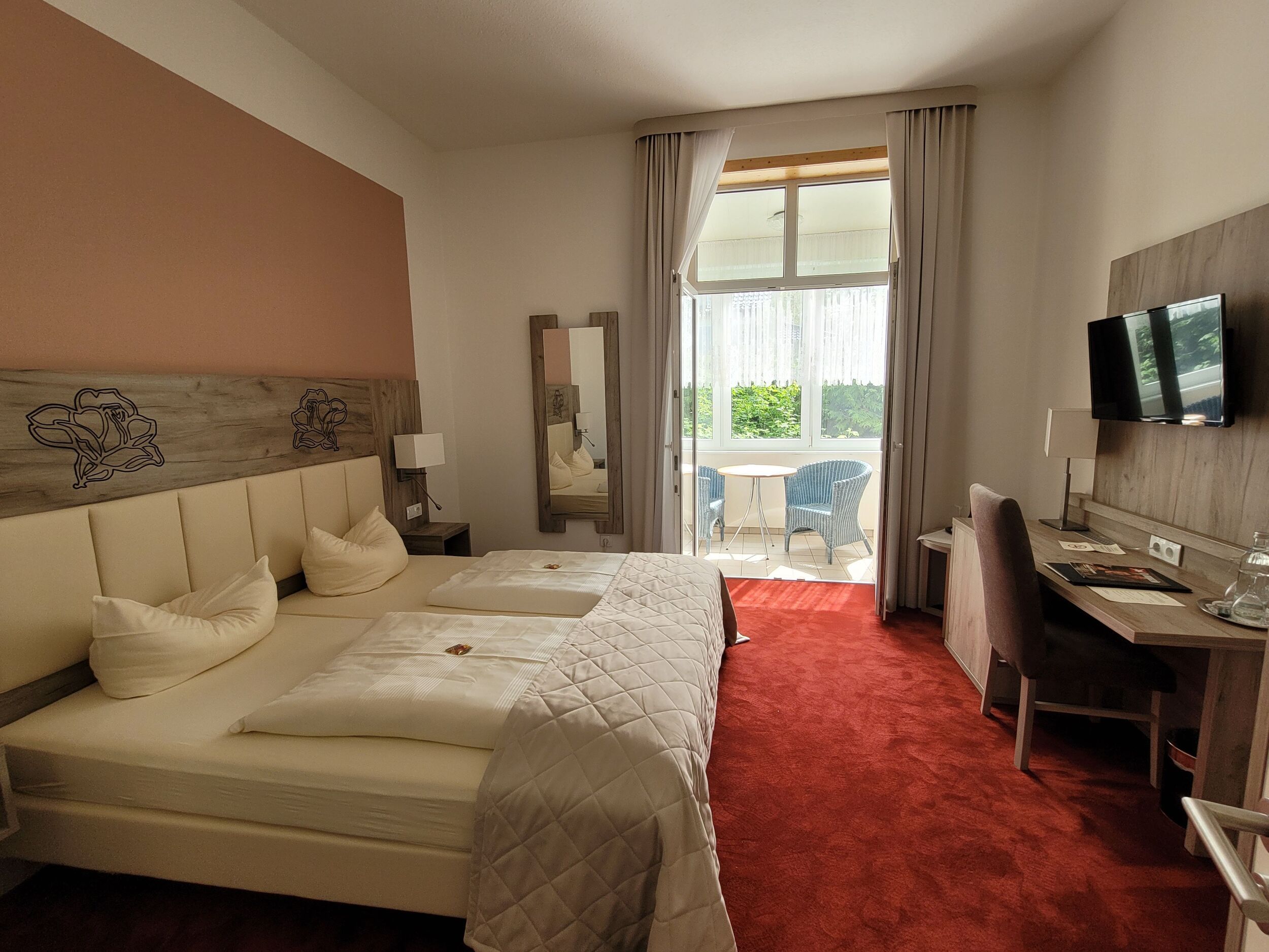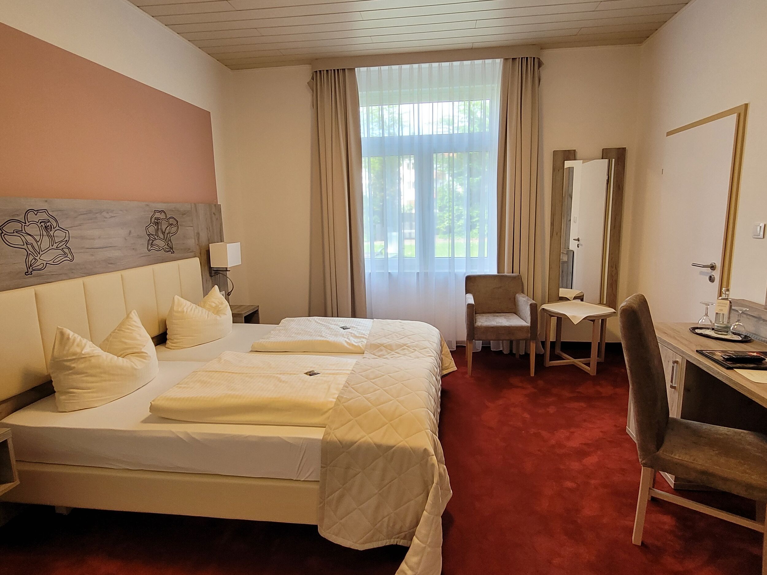 Die besonders ruhigen, 2022 liebevoll renovierten Zimmer der Parkvilla verfügen über moderne Bäder, weiche Teppichböden, Schreibtisch, Minibar, Safe und Kabel-Flach-TV.