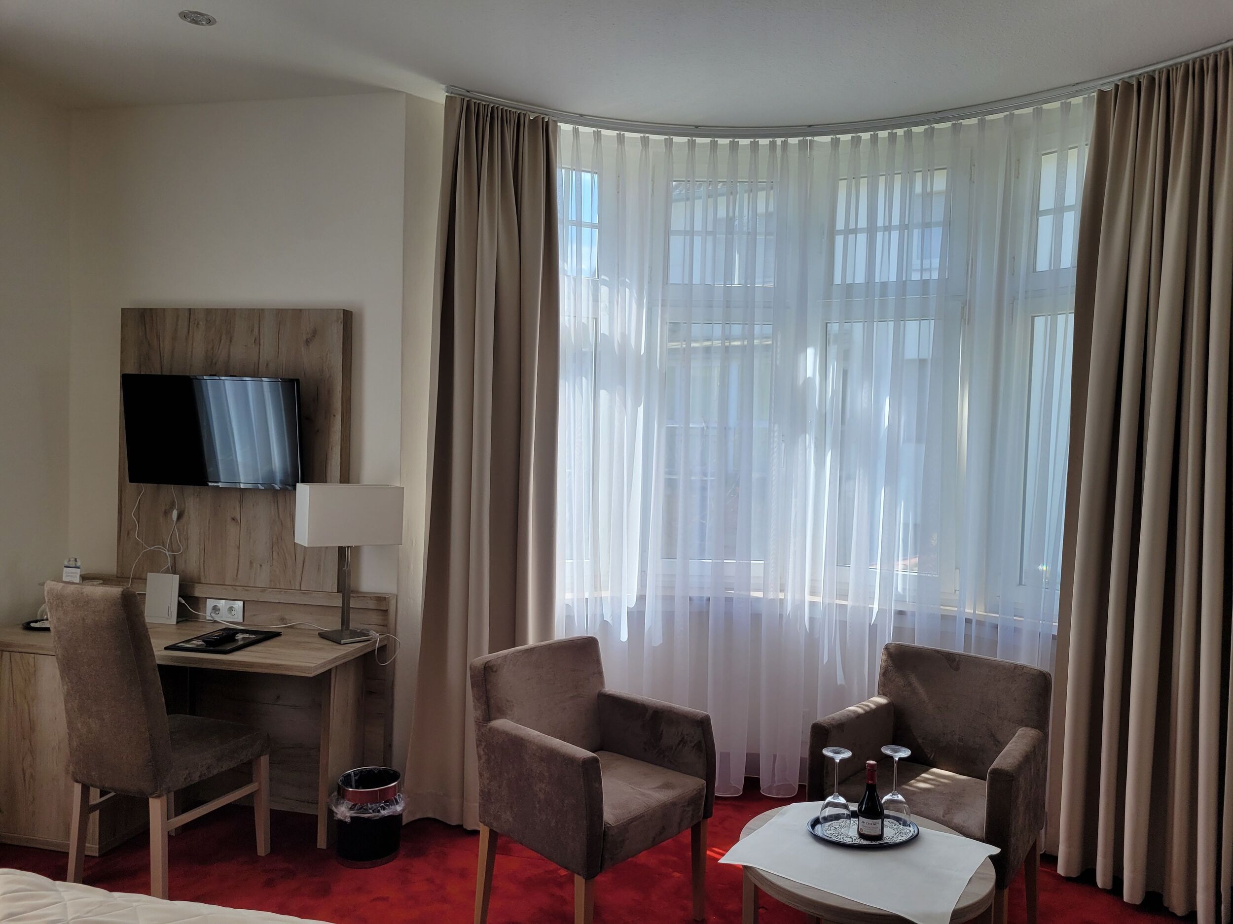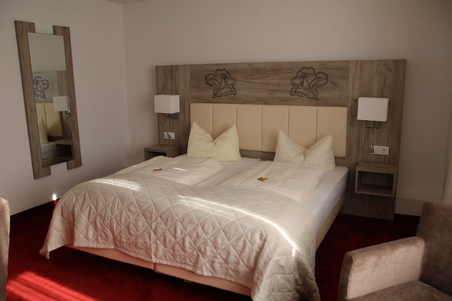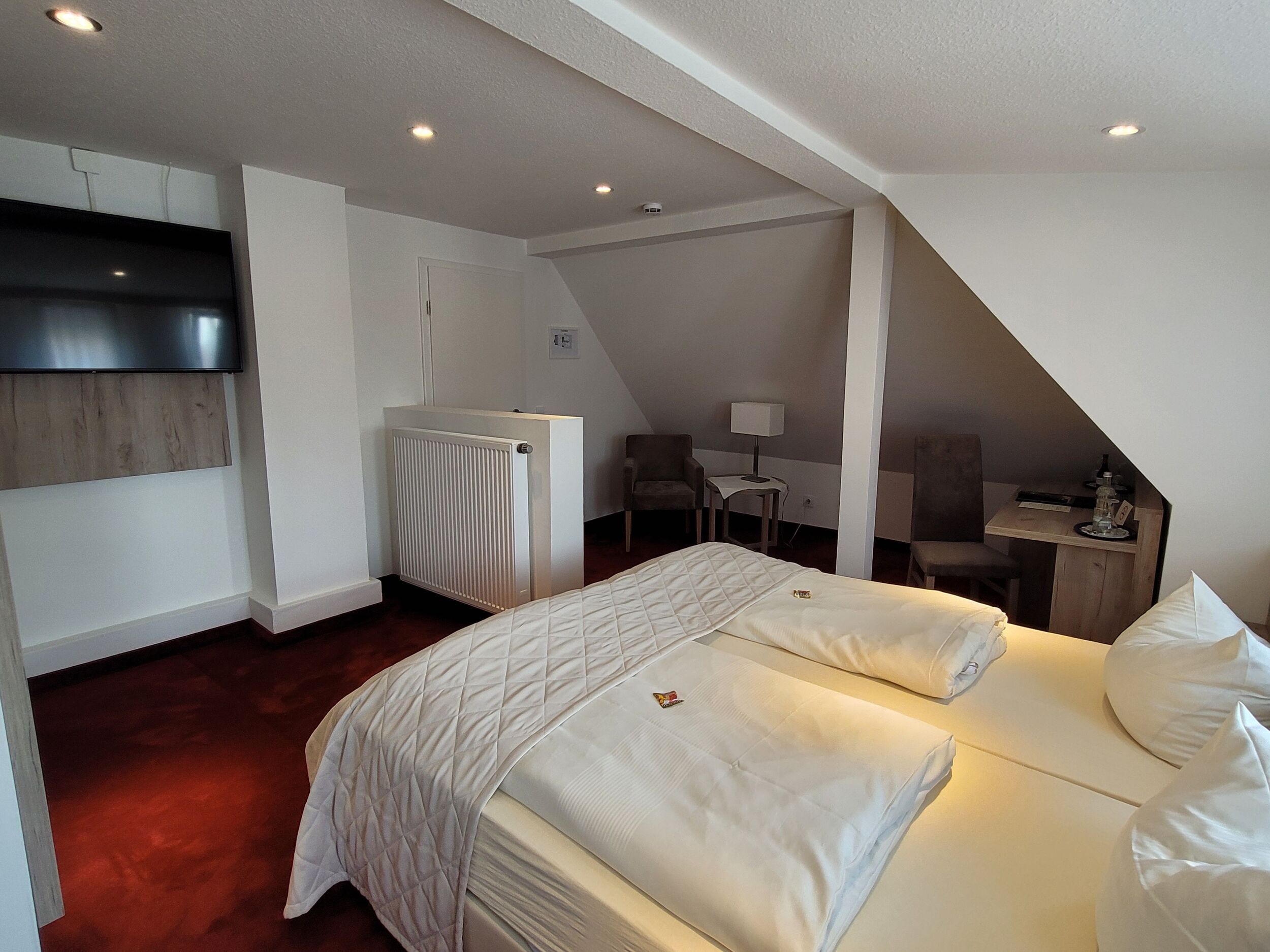 Die besonders ruhigen, 2022 liebevoll renovierten Zimmer der Parkvilla verfügen über moderne Bäder, weiche Teppichböden, Schreibtisch, Minibar, Safe und Kabel-Flach-TV.