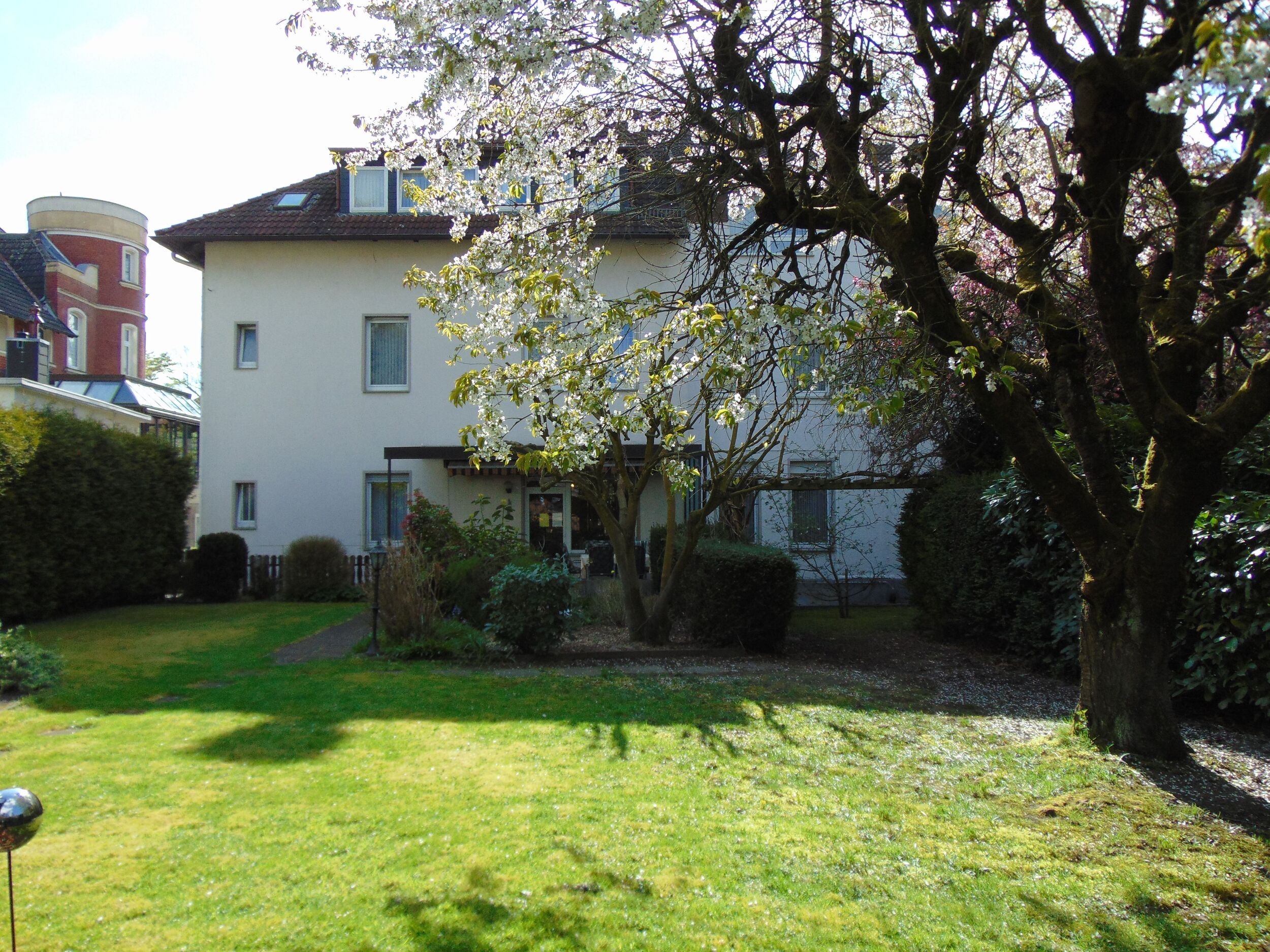 Diese denkmalgeschützte Villa bietet insbesondere den Vorteil eines Aufzugs. Der romantische Garten mit Liegestühlen, Terrasse, sowie die gemütlichen Aufenthaltsräume, das Fernsehzimmer laden zum Relaxen ein. Der Abstellraum für Fahrräder und Rollatoren hat eine Auflademöglichkeit für E-Bikes und Rollstühle. Hier befinden sich auch die etwas günstigeren Budget-Zimmer. Parkplätze vor dem Haus (soweit verfügbar).